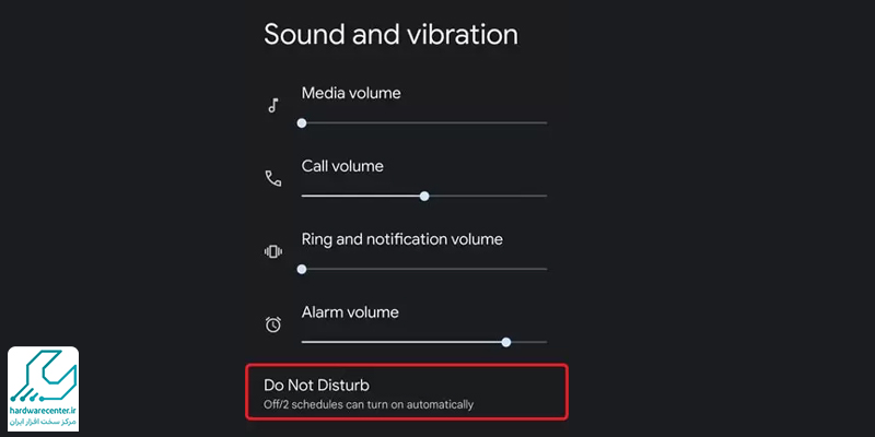 - از منوی تنظیمات صدا مطمئن شوید که حالت بی صدا یا Do Not Disturb خاموش است.